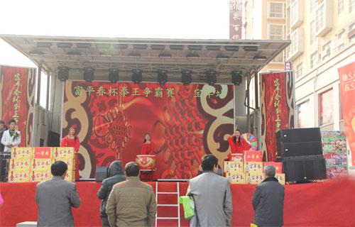 11月30日上午“富平春”杯拳王争霸宝丰站总决赛在德信泉百货广场激情开战, 伴随着主持人精彩的开场白,拳王争霸总决赛正式拉开帷幕。