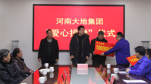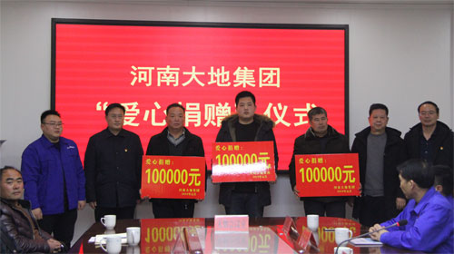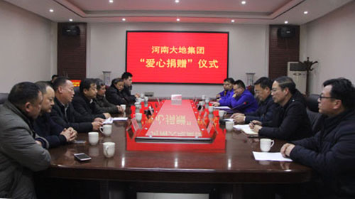 1月28日下午,od(中国)官方网站在中控三楼会议室举行“爱心捐赠”仪式。大地集团分别为大营镇蛮子营村、肖旗乡岭湾村、宝丰县观音堂滴水崖村捐赠现金10万元。