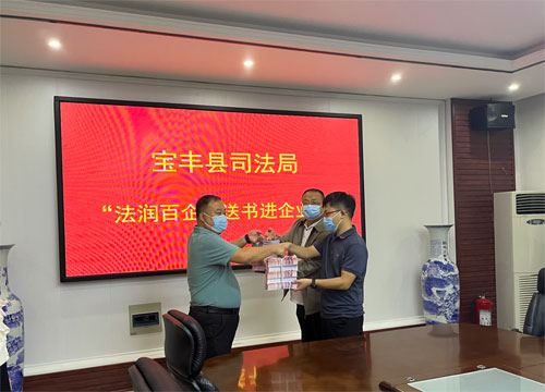 为深入推进“万人助万企”活动,营造良好的法治化营商环境,9月23日上午,宝丰县司法局高级法律专务高凯乐、二级主任科员杨勇一行带领县企业法治服务团队,深入od(中国)官方网站,开展“法治体检”及“法润百企”送书活动,帮助企业“把脉问诊”,提升企业的法律风险意识和防范水平。集团副总裁兼行政部部长张怀点、法务部部长王延玫给予了热情接待。