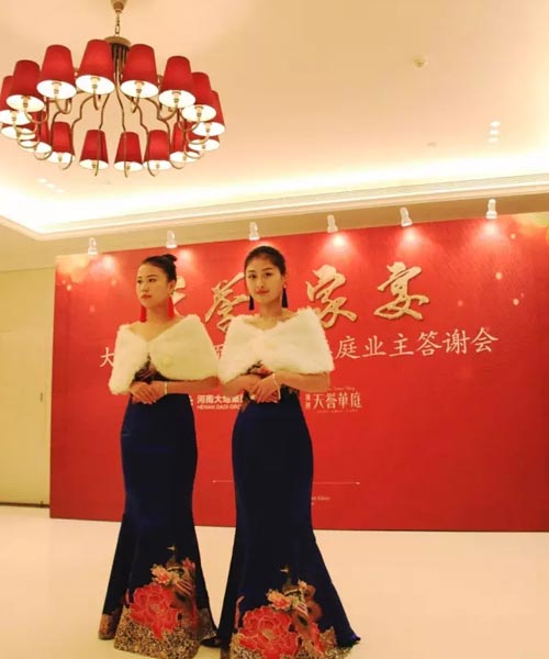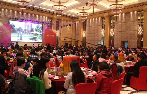 1月9日晚,“天誉·家宴——大地集团&领创·天誉华庭业主答谢会”在郑州裕达国贸酒店盛大启动,以此回馈广大业主对天誉华庭的鼎力支持和厚爱。大地集团携旗下领创置业、大地水泥、贾湖酒业等企业领导、代表,与各位业主、媒体嘉宾1000多人汇聚一堂,共同度过了一个温情难忘的夜晚。 寒冷的天气并未影响大家相聚的热情,下午不到5点,现场签到处已门庭若市,在工作人员贴心引导下,大家有序进行微信签到,进入答谢会现场。晚上6点左右,一段阐述大地集团恢宏实力和过往数载坚实历程的宣传短片拉开了本次活动的序幕。大地集团董事长张彪、贾湖酒业总经理赵书民、领创置业的执行董事殷红叶分别发表了热情洋溢的致辞。 为使各位来宾度一个欢乐充实的夜晚,“天誉·家宴”不仅有丰盛的美食、美酒,更有诸多精彩节目助兴!动感炫目的电光舞,让现场的来宾沉浸在梦幻美妙世界;展现领创·天誉华庭峥嵘发展轨迹的沙画&独舞表演,令在座各位充分领略了匠心品质的倾情缔造;炫酷的魔术表演、新奇好玩的泡泡秀,让人目不暇接;一曲《相亲相爱一家人》,天誉一家人,喜乐祥和气氛满溢! 紧接着,微信摇一摇抢红包以及多种重磅大奖的抽取颁发,将现场气氛又一次的推向了高潮。领创置业精心准备了多重好礼,表达了对于各位家人的感恩之情!苹果6S Plus、48寸液晶电视、洗衣机、电饭煲、富平春酒等丰厚礼品,超高得奖率,让不少业主好运连连,收获满满幸运大奖!寒冷的冬日夜晚因这里的欢声笑语变得红红火火、热情欢腾。 觥筹交错间,欢声笑语中,“天誉·家宴——大地集团&领创·天誉华庭业主答谢会”圆满结束。 答谢会现场