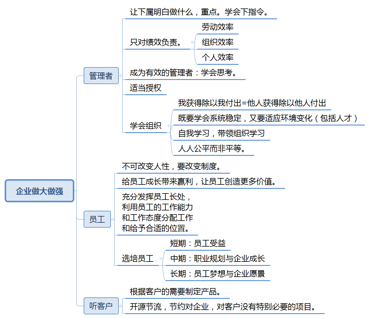 为期5天的中旭培训学习结束了,非常感谢公司对我的信任,为我提供了这次宝贵的学习机会。管理者的五项修炼,使我收获很大,自己对管理这件事和管理者资格角色都有了更深刻的认识,这些知识对于今后的工作有很大的帮助和提升。 管理者的五项修炼,从基层,中层到高层管理者,全面的讲解了什么是管理者,如何成为一名合格的优秀的管理者。不仅使我对当下的工作有了新的认识,也对未来的的工作有了更明确的方向。同时,对集团的很多决策有了深入的理解,对od(中国)官方网站也有了新的认知,加深了对企业的认同感。 以下是这5天培训的一些心得体会: 一、管理者与管理的目的 管理者的作用是解决问题而不是成为问题,管理是为了解决效率问题。 管理者不是每天坐在办公室里思考问题,而是要发现问题并能够解决问题。没有调查,就没有发言权。所以要经常与上下级沟通,发现问题才能弄清楚问题的根本原因。与上级沟通能够更好的理解领导布置的任务,与下级沟通能够了解每个人的长短处,分工才能让正确的人去做正确的事。 二、通过改变制度从而改变人的行为 制度就像河道,人就像河道里的水,水本身没有好坏,人也一样。 制定一个适合自己公司门的制度不仅可以约束员工,同时还能激励员工。每个企业和部门都有不同的实际情况,制定制度不能生搬硬套,没有最好的制度,只有适合的制度。 三、管理始终为经营服务 一般人们总是说经营管理,在培训之前我也一直以为是一件事,通过培训学习才知道,两者有着本质的区别。 经营解决收入问题,管理是为了控制支出;经营是为了增大被减数,管理是为了减小减数;管理做的再好也不会做到不支出,但是经营不好却可能没有收入。经营的第一要素是客户价值,公司对外经营有客户,部门对内经营一样有客户。一条生产线、上下游部门之间、平行部门之间都是彼此的客户,经营好各部门的客户才能有效合作、减少浪费和失误,才能真正做到减小减数,提高公司利润。 四、管理事和领导人 俗话说,铁打的营盘流水的兵,其实就是说的流程管理。 一个公司,一个部门,一个岗位,人员都在不停的流动。通过制定一个固定有效的流程,可以很好的避免因为人员流动造成的重复培训浪费、提高工作效率。比如以我现在的岗位中控操作员为例,按照操作规程操作,新进的学徒也可以很快掌握操作的要点重点,学习起来就事半功倍。 五、管理追求对等而非平等 因为分工不同,每个人承担的责任是不一样的,所以每个人的回报也是不一样的。在看到自己和别人回报的差别时应当首先想一下我们担当到的责任是不是一样,付出是不是一样。责任,权力,利益相互平衡,管理才能平衡,任意一点失衡,人们就会通过牺牲另外两点来弥补。 另外,通过学习,我对企业如何做的更好有了初步的认识,如下图: