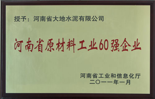 首页 >> od登录入口 >>资质荣誉 >> 河南省原材料工业60强